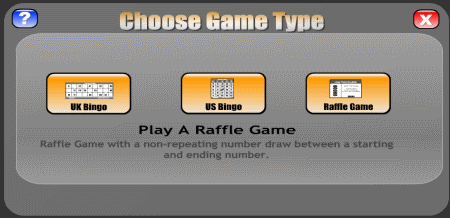 The ezDraw Quick Start Screen with mouse over the Raffle Game option button