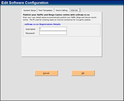 Select Voice Use the Select Voice dropdown list box to select a pre-recoded Voice. A Voice is a collection of mp3 recordings of numbers, one for each number in your Number Range. Add Voice Click on the Add Voice button to create a new Voice option. Delete Voice Click on the Delete Voice button to delete the selected Voice. New Number Click on the New Number button to record a new Number into the selected Voice. Delete Number Click on the Delete Number button to delete the selected Number from the selected Voice. [Contents] Internet Tab Select the Internet tab to set the web page URL to which you want to publish live draws or winning ticket numbers for a Live Internet Game.